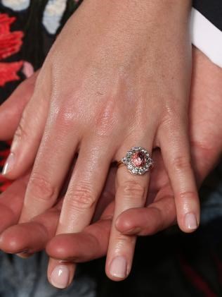 “Είναι μια πέτρα padparadscha δύο καρατίων που περιβάλλεται από 10 μπριγιάν και δύο διαμάντια στα πλαϊνά που είναι κομμένα σε σχήμα αχλαδιού προκειμένου να προσθέσουν επιπλέον βαρύτητα στο κλασικό σχέδιο”, ανέφερε.