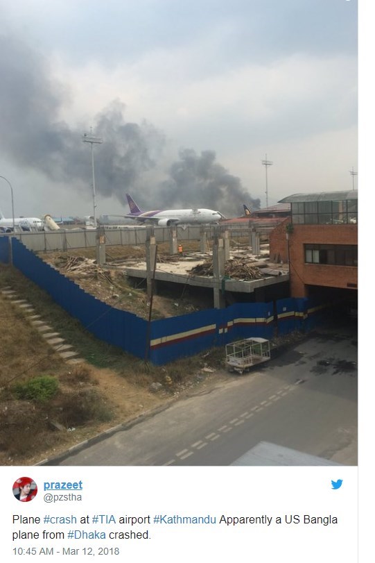 Σύμφωνα με δηλώσεις αξιωματούχων στο βρετανικό ραδιοτηλεοπτικό δίκτυο BBC, το αεροπλάνο της αεροπορικής εταιρείας US-Bangla βγήκε από τον διάδρομο στη διάρκεια της προσγείωσής του και πιστεύεται ότι μετέφερε 67 ανθρώπους.