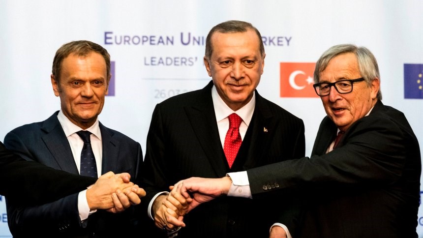 Η Τουρκία θα έπαιρνε έξι δισεκατομμύρια ευρώ, αν με τη σειρά της σφράγιζε τα σύνορά της. Οι μισοί Ευρωπαίοι έχουν ήδη εκταμιεύσει. Ο επικεφαλής της Ευρωπαϊκής Επιτροπής Jean-Claude Juncker διαβεβαίωσε τον Τούρκο Πρόεδρο Ρετζέπ Ταγίπ Ερντογάν στη σύνοδο κορυφής στη Βουλγαρία τον Μάρτιο ότι σύντομα θα διατεθούν τα τρία δισεκατομμύρια που λείπουν.