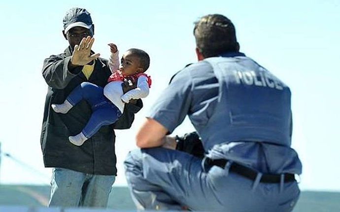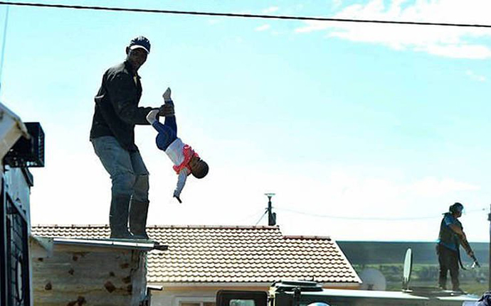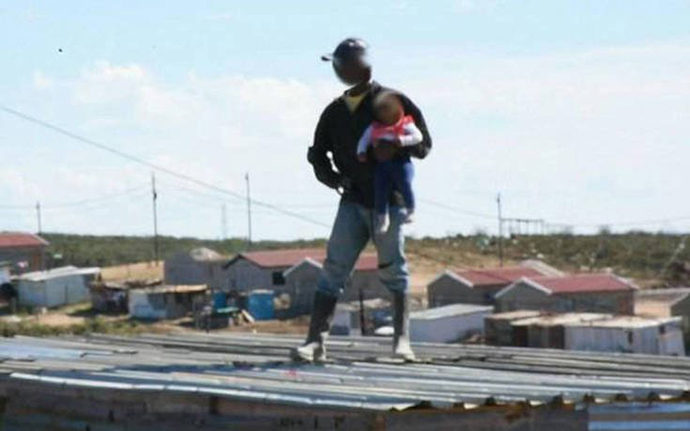 Γροθιά στο στομάχι οι εικόνες με τον άνδρα που δεν δίστασε να πετάξει την έξι μηνών κόρη του από την ταράτσα σε ένα συγκρότημα παράνομα χτισμένων κατοικιών, προσπαθώντας να σταματήσει την κατεδάφισή του, κοντά στο Πορτ Ελίζαμπεθ στη Νότια Αφρική.