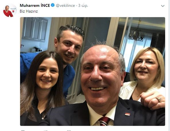 «Με την άδεια του Θεού και τη βούληση του έθνους, στις 24 Ιουνίου θα εκλεγώ πρόεδρος», δήλωσε στη διάρκεια τελετής στην Άγκυρα ο Ιντσέ, σημαντικό στέλεχος του CHP και δεινός ρήτορας ο οποίος επιβλήθηκε τα τελευταία χρόνια ως ένας από τους δριμύτερους επικριτές του Ερντογάν.