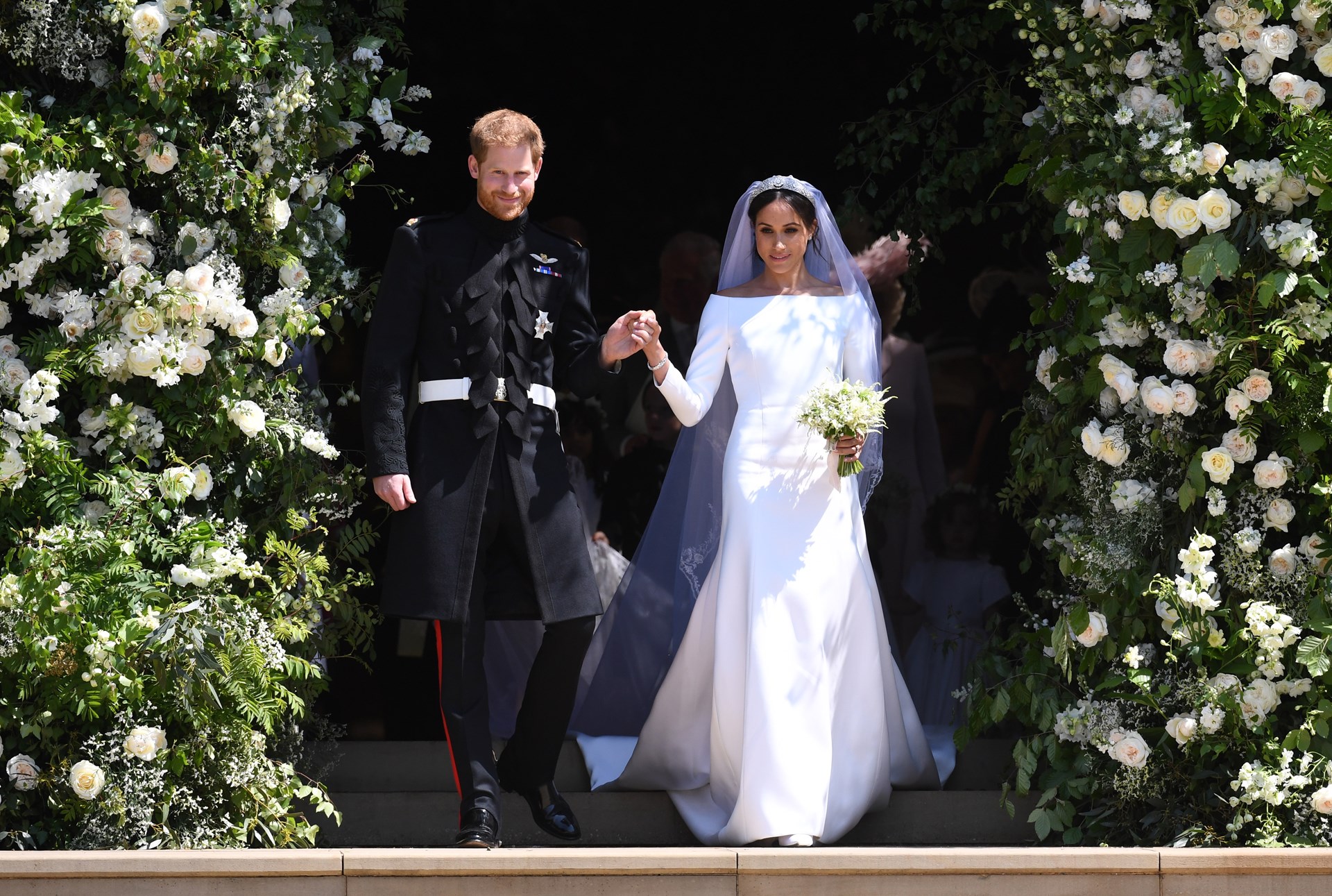 Για τον γάμο της με τον πρίγκιπα Χάρι, η Μέγκαν Μαρκλ διάλεξε ένα λευκό μεταξωτό νυφικό που σχεδίασε η Βρετανίδα Κλερ Γουέιτ Κέλερ, η καλλιτεχνική διευθύντρια του οίκου Givenchy.