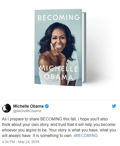 Τον Φεβρουάριο, η Μισέλ Ομπάμα ανακοίνωσε ότι θα δημοσιεύσει τα απομνημονεύματά της, με τίτλο Becoming.