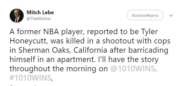 Τραγικά είναι τα νέα που έρχονται από την αντίπερα όχθη του Ατλαντικού σχετικά με τον Τάιλερ Χάνεϊκατ. Όπως μεταδίδουν στις ΗΠΑ, αλλά δεν επιβεβαιώνουν ακόμα επίσημα χείλη, ο 28χρονος πρώην NBAer, ο οποίος στη διάρκεια της προηγούμενης σεζόν αγωνίστηκε στην Euroleague με τη φανέλα της Χίμκι, έπεσε νεκρός μετά από ανταλλαγή πυροβολισμών στην περιοχή Sherman Oaks της Καλιφόρνια.