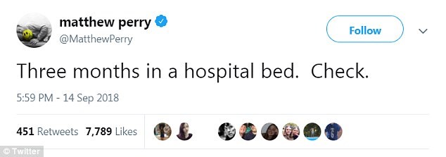 Τον Αύγουστο είχε γίνει γνωστό ότι ο ηθοποιός θα έκανε χειρουργική επέμβαση στο έντερο, αλλά κανείς δεν γνώριζε ότι ο Πέρι παρέμεινε νοσηλευόμενος για τόσο μεγάλο χρονικό διάστημα.