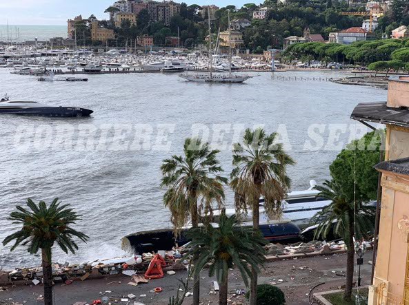 Ωστόσο, μεγάλη καταστροφή έχει υποστεί και το μήκους 37 μέτρων σκάφος του Μπερλουσκόνι που ήταν αγκυροβολημένο στη μαρίνα του Ραπάλο, όπου από τη θαλασσοταραχή υπέστησαν ζημιές ή βυθίστηκαν αρκετά σκάφη.