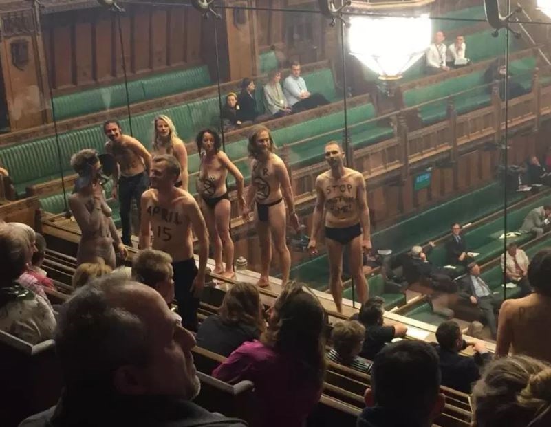 Τουλάχιστον 12 άνδρες και γυναίκες εισέβαλαν στη βρετανική βουλή κατά τη διάρκεια συζήτησης για το Brexit, προκειμένου να διαμαρτυρηθούν για την κλιματική αλλαγή.