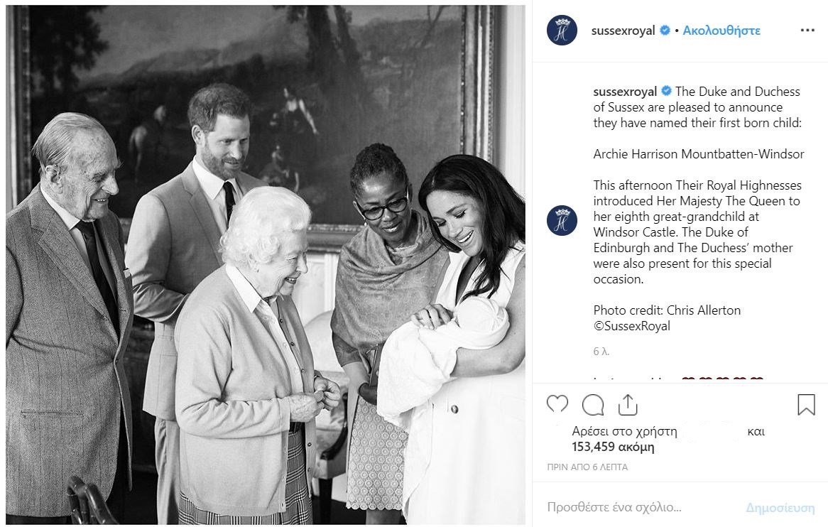 Ολόκληρο το όνομά του είναι Άρτσι Χάρισον Μαουντμπάτεν Ουίνδσορ. To μωρό δεν θα έχει βασιλικό τίτλο ενώ θα αποκαλείται μάστερ Άρτσι.