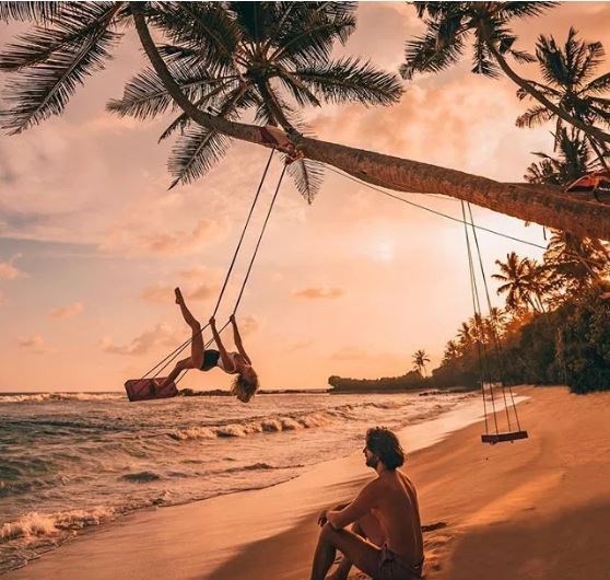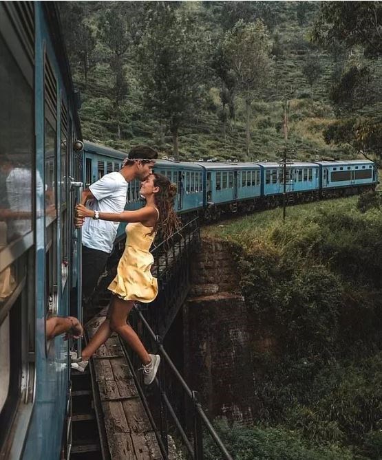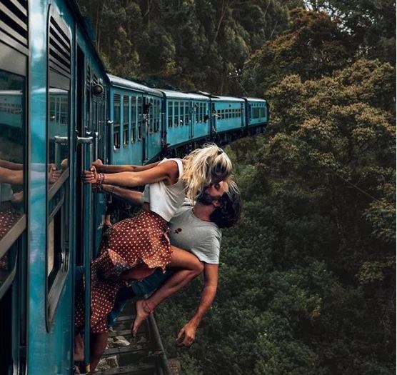 Φιλιούνται ενώ κρέμονται από βαγόνι τρένου που “κρέμεται” σε γκρεμό με ένα δάσος να απλώνεται από κάτω τους. Η φωτογραφία τραβήχτηκε στη Σρι Λάνκα ενώ δείχνει προφανώς ότι το ζευγάρι παραβίασε κάθε κανόνα ασφαλείας. Φωτογράφος θεωρείται ότι είναι ο αδερφός της Καμίλ.