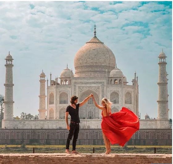 Άλλη φωτογραφία δείχνει την Καμίλ στην παραλία, να κάνει κούνια ενώ στέκεται στο ένα πόδι, ενώ άλλο στιγμιότυπο απεικονίζει το ζευγάρι να στέκεται ξυπόλυτο στα αρχαία ερείπια του Ρατζαστάν στην Ινδία, ενώ πάλι από την Ινδία είναι άλλη μια τολμηρή φωτογραφία τους από το Ταζ Μαζάλ όπου ακροβατούν.