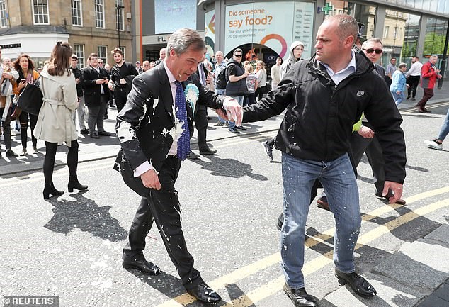 Ο ηγέτης του κινήματος του Brexit βρισκόταν στο κέντρο του Νιουκάστλ όταν ένας άνδρας τον έλουσε -σχεδόν- με το μιλκσέικ του. Η ασφάλεια τον φυγάδευσε αμέσως ενώ εκείνος ούρλιαζε επειδή απέτυχαν να τον προστατεύσουν λέγοντας πως εκείνος είχε εντοπίσει τον δράστη από ένα χιλιόμετρο μακριά. “Πώς έγινε αυτό;” αναρωτήθηκε προς τους άνδρες της ασφαλείας του προσθέτοντας ότι ήταν “παταγώδης αποτυχία”. Ο δράστης συνελήφθη αμέσως.