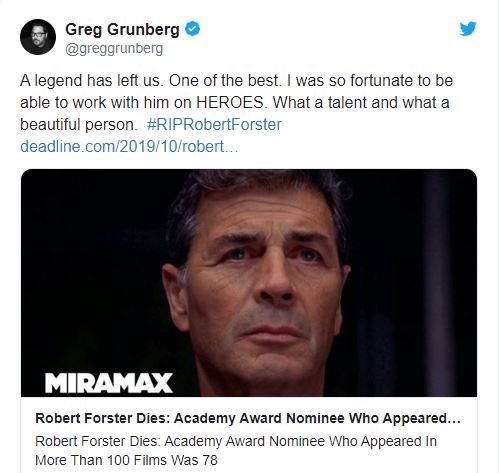 Σε ηλικία 78 ετών, έφυγε από τη ζωή ο θρυλικός ηθοποιός Ρόμπερτ Φόρτσερ, ο οποίος υπέφερε τα τελευταία χρόνια από καρκίνο στον εγκέφαλο.