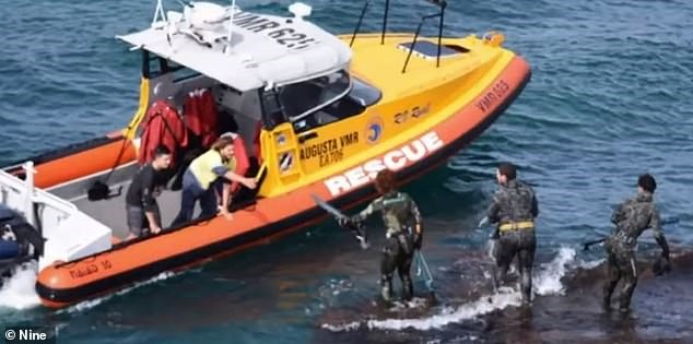Κατάφεραν να κολυμπήσουν και να ανέβουν στον ύφαλο, ενώ τρομοκρατημένοι είδαν ακόμα πέντε καρχαρίες να κάνουν κύκλους γύρω από τον βράχο που στέκονταν.