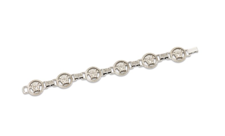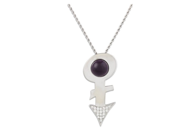 Και είναι εντυπωσιακά: δύο διαμαντένια βραχιόλια Versace, με φλοράλ ντιζάιν, διαμέτρου 17,78 εκατοστών. Επίσης, ένα κολιέ από λευκόχρυσο 14 καρατίων, αμέθυστο και διαμάντια 2,88 καρατίων, το οποίο ο Πρινς φορούσε όταν έβγαινε στη σκηνή.