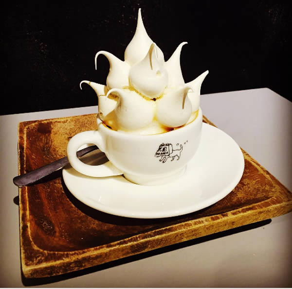 Το Take Out Drawing Cafe στη Σεούλ σερβίρει τα espressos του διακοσμημένα με “βουνά” μαρέγκας.Η μαρέγκα δεν λιώνει, οπότε οι πελάτες μπορούν να σπάσουν τα κομμάτια και να τα βυθίσουν στον καφέ, για ένα νόστιμο αποτέλεσμα.