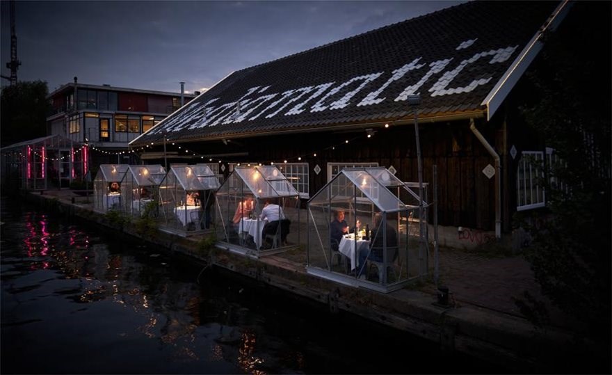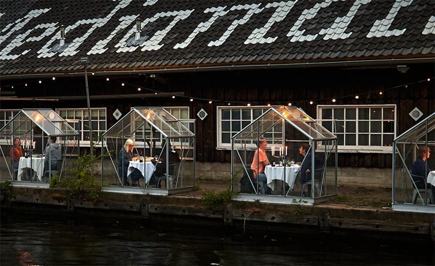 Ένα εστιατόριο στην Ολλανδία βρήκε τον κατάλληλο τρόπο να λειτουργήσει στην εποχή του κορονοϊού. Έστησε γυάλινους θαλάμους, μέσα στους οποίος τοποθέτησε ένα τραπέζι, στο οποίο μπορούν να καθίσουν μέχρι τρία άτομα.