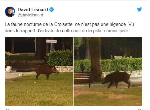 Για να μην προκληθεί κάποιο ατύχημα και να μην τραυματιστεί το αγριογούρουνο, οι αστυνομικοί το παρακολούθησαν υπομονετικά όσο έκανε τον περίπατό του στην Κρουαζέτ και χάζευε τις βιτρίνες των πολυτελών μπουτίκ, κοντά στο Παλαί ντε Φεστιβάλ. Συνοδευόμενο πάντα από ένα περιπολικό, το νεαρό ζώο έκανε στο τέλος στροφή και επέστρεψε στο κοντινό δάσος απ’ όπου προφανώς κατέβηκε στην πόλη. «Όσο καιρό είμαι αστυνομικός, είναι η πρώτη φορά που βλέπω αγριογούρουνο στην Κρουαζέτ», είπε ο Νταρός.