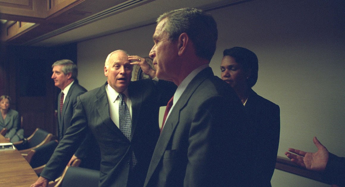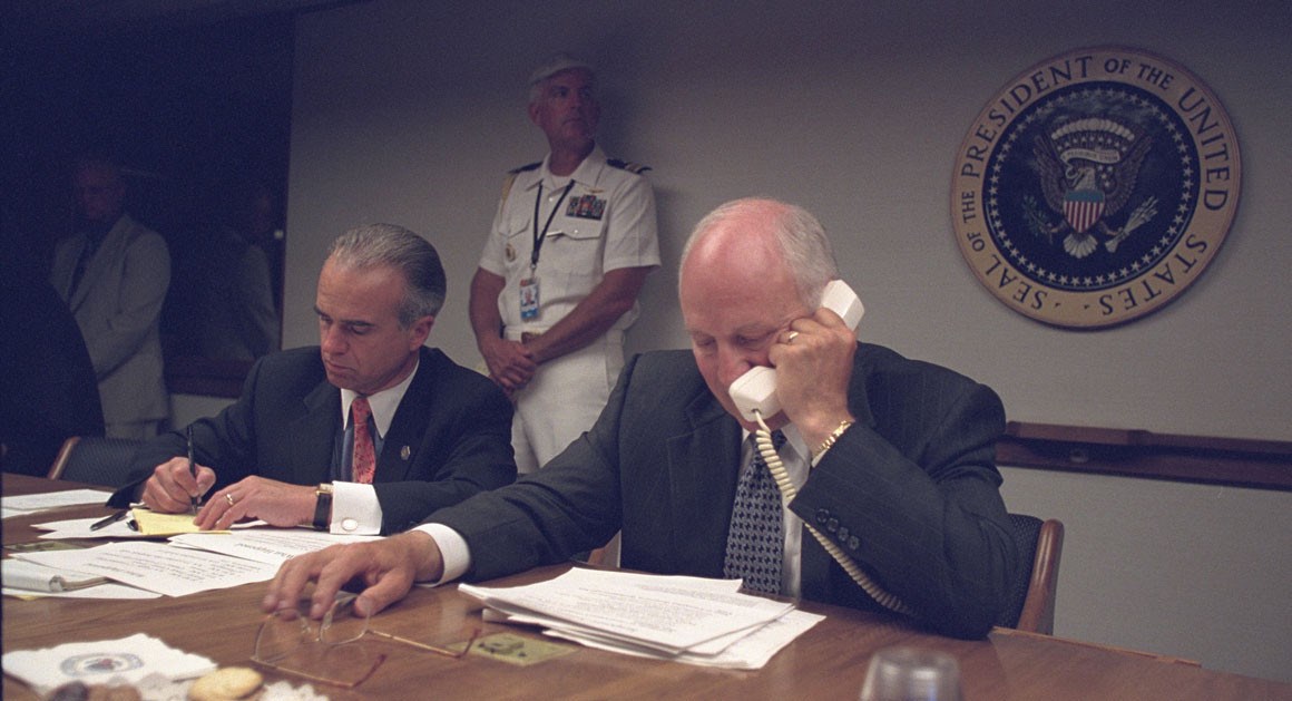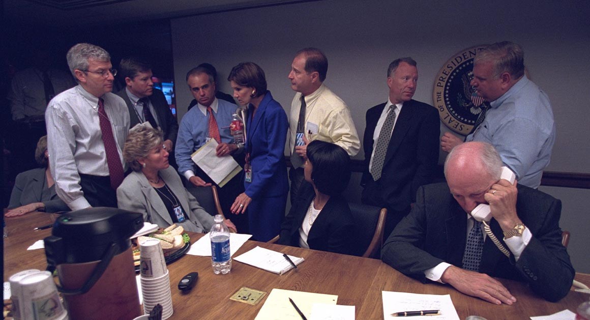 Κατά τις τρομοκρατικές επιθέσεις της 11ης Σεπτεμβρίου 2001 ο αντιπρόεδρος Ντικ Τζσέινι, η Λιν Τσέινι, η Κοντολίζα Ράις, ο Νόρμαν Μινέτα, η Μέρι Μάταλιν, ο Λιούις Σκούτερ Λίμπι, ο Τζόσουα Μπόλτεν, η Κάρεν Χιουζ, ο Στέφεν Χάντλεϊ, ο Ντέιβιντ Άντινγκτον, πράκτορες των Μυστικών Υπηρεσιών και άλλο προσωπικό, περιλαμβανομένου και ταγματάρχη του αμερικανικού στρατού μεταφέρθηκαν από τα γραφεία τους στον Λευκό Οίκο στο καταφύγιο. Ο πρόεδρος Μπους ήταν τότε στη Φλόριντα.