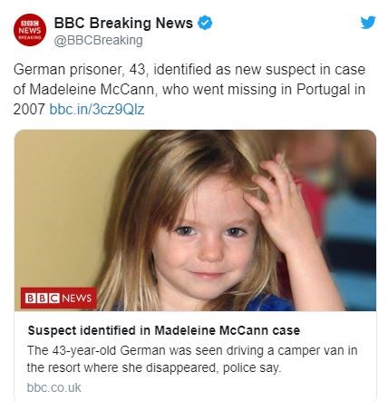 Ένας 43χρονος Γερμανός, ο οποίος ζούσε στην Πορτογαλία το καλοκαίρι του 2007, είναι πλέον ο βασικός ύποπτος για την υπόθεση εξαφάνισης της Μαντλίν ΜακΚάν, η οποία αγνοείται από το 2007. Ο νέος ύποπτος, ο οποίος βρίσκεται σε φυλακή στη Γερμανία γι’ άλλο αδίκημα, φέρεται να είναι ο τελευταίος άνθρωπος που είδε τη μικρή Μαντλίν τον Μάιο του 2007.