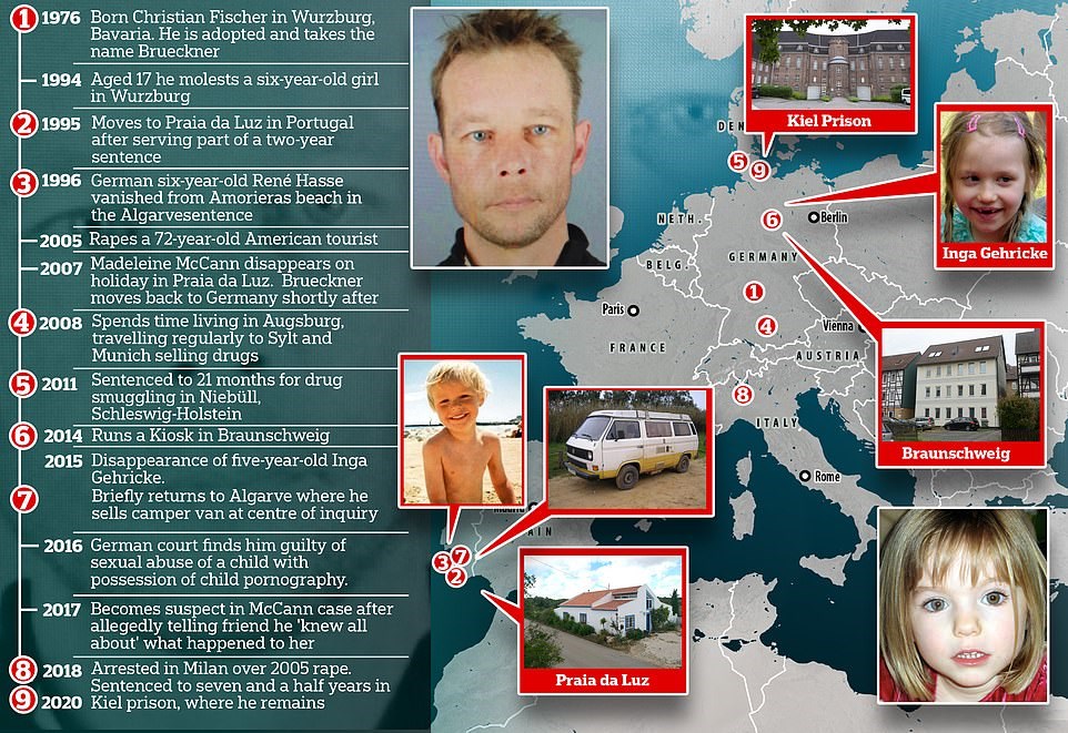 Οι εισαγγελείς θεωρούν ότι ο βασικός ύποπτος για τον φόνο της Μαντλίν ΜακΚάν ενδέχεται να βρίσκεται πίσω και από τέταρτη άλυτη υπόθεση εξαφάνισης παιδιού. Οι βελγικές Αρχές ερευνούν αν ο 43χρονος Γερμανός παιδόφιλος εμπλέκεται με τον μυστηριώδη θάνατο της 16χρονης Καρόλα Τίτζε το 1996. Η Καρόλα εξαφανίστηκε το πρωί της 5ης Ιουλίου ενώ έκανε διακοπές με τους γονείς της στο φλαμανδικό θέρετρο Ντε Χάαν στη Δυτική Φλάνδρα. Η έφηβη ήταν αγνοούμενη για έξι ημέρες προτού το πτώμα της βρεθεί βίαια ακρωτηριασμένο σε αμμόλοφους. Μέρες πριν από την εξαφάνισή της, φέρεται να την είχαν δει με έναν Γερμανό τον οποίο η αστυνομία προσπάθησε να εντοπίσει αλλά απέτυχε. Εισαγγελείς στην Μπριζ επιβεβαίωσα στα τοπικά Μέσα ότι τώρα εξετάζουν την πιθανή σύνδεση ανάμεσα στον θάνατο της Τίτζε με τον Μπρίκνερ μετά την υπόδειξή του ως βασικού υπόπτου για την εξαφάνιση της Μαντλίν ΜακΚάν από την Πράια ντα Λουζ το 2007. Αμέσως μετά ο Μπρίκνερ συνδέθηκε με άλλες δύο εξαφανίσεις παιδιών. Η οικογένεια του 6χρονου Ρενέ Χάζεε που εξαφανίστηκε από την Αλγκάρβε το 1996 αποκάλυψε ότι η αστυνομία άνοιξε ξανά τον φάκελο της υπόθεσης για πρώτη φορά έπειτα από 20 χρόνια, ενώ οι εισαγγελείς άνοιξαν και πάλι την υπόθεση της Ίνγκα Γκεχρίκε, της αποκαλούμενης Γερμανίδας Μάντι, από δάσος στη Σαξονία Άνχαλτ το 2015. Η υπόθεση εξαφάνισης της Καρολίνα το 1996, πάγωσε το 2016. Εκείνη την εποχή η αστυνομία έδωσε στη δημοσιότητα ένα σκίτσο του Γερμανού με τον οποίο το κορίτσι βρισκόταν στην ντίσκο αλλά ποτέ δεν ταυτοποιήθηκε. Ο δήμαρχος του Ντε Χάαν είπε: “Η κοινότητά μας έζησε ένα σοκ όταν το πτώμα της Καρόλα βρέθηκε σε δασική έκταση στους αμμόλοφους το 1996” σύμφωνα με το βελγικό ειδησεογραφικό site VRT. “Φυσικά και θέλουμε τον δράστη να βρεθεί έπειτα από τόσο καιρό. Ας ελπίσουμε ότι η γερμανική έρευνα θα ξεκαθαρίσει την υπόθεση” πρόσθεσε.