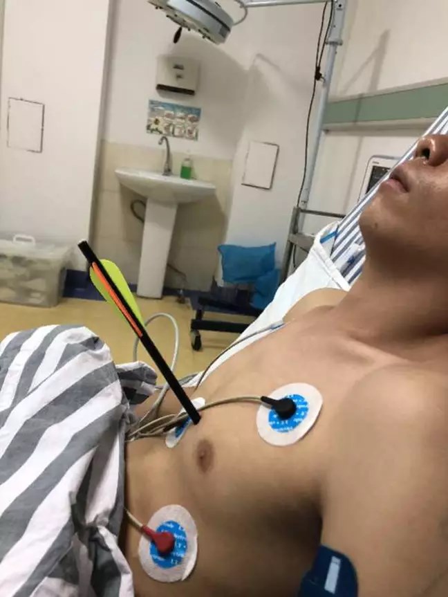 Το προσωπικό του συγκεκριμένου νοσοκομείου είναι συνηθισμένο σε παράξενα περιστατικά, καθώς λίγες ημέρες πριν ένας άνδρας εισήχθη με ένα βέλος βαλλίστρας καρφωμένο στο στήθος του.