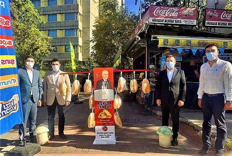 O «κακός χαμός» έχει γίνει στην Τουρκία μετά την εκστρατεία-πρωτοβουλία του εταίρου του Ερντογάν, Ντεβλέτ Μπαχτσελί με τα ψωμιά. Συγκεκριμένα, από την περασμένη Παρασκευή ο ηγέτης των «γκρίζων λύκων» ξεκίνησε μια εκστρατεία «κρεμασμένου ψωμιού» αναφέροντας χαρακτηριστικά ότι «κάθε πλούσιος άνθρωπος της πατρίδας πρέπει να πάει στο πλησιέστερο φούρνο, να αγοράσει ψωμί και να το κρεμάσει έξω για τους φτωχούς. Δεν κοιμάται κανείς όσο ο γείτονάς του πεινάει». Στο κέντρο της Άγκυρας άρχισαν να εμφανίζονται τα πρώτα σταντ με κρεμασμένα ψωμιά με τη φωτογραφία του Μπαχτσελί με την κίνηση αυτή να προκαλεί την αντίδραση της αντιπολίτευσης.
