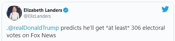 “Όταν υπάρχει νίκη. Αν υπάρξει νίκη. Πιστεύω θα νικήσουμε… αλλά μόνο όταν υπάρχει νίκη. Δεν υπάρχει λόγος να παίξουμε παιχνίδια” είπε και σημείωσε ότι την Τρίτη θα την περάσει τηλεφωνώντας σε ανθρώπους που υπήρξαν πολύ πιστοί και πολύ σημαντικοί, υπονοώντας ενδεχομένως επικοινωνία και συνεντεύξεις σε Μέσα αλλά δεν διευκρίνισε. Σε άλλο σημείο φάνηκε σίγουρος ότι θα κερδίσει τουλάχιστον 306 εκλέκτορες.