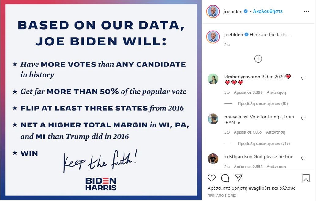 Τις περισσότερους ψήφους από οποιοδήποτε άλλον υποψήφιο συγκεντρώνει ο Τζο Μπάιντεν “σπάζοντας” τα ρεκόρ στην ιστορία των προεδρικών εκλογών.