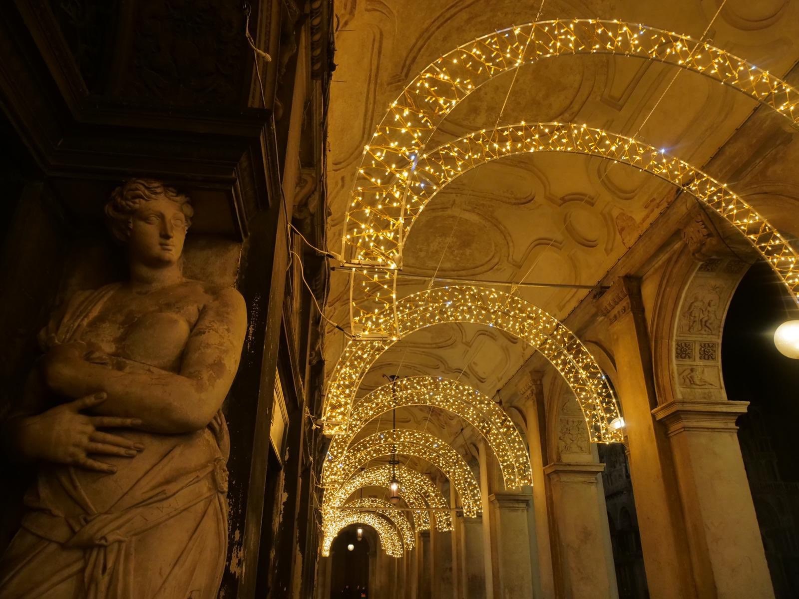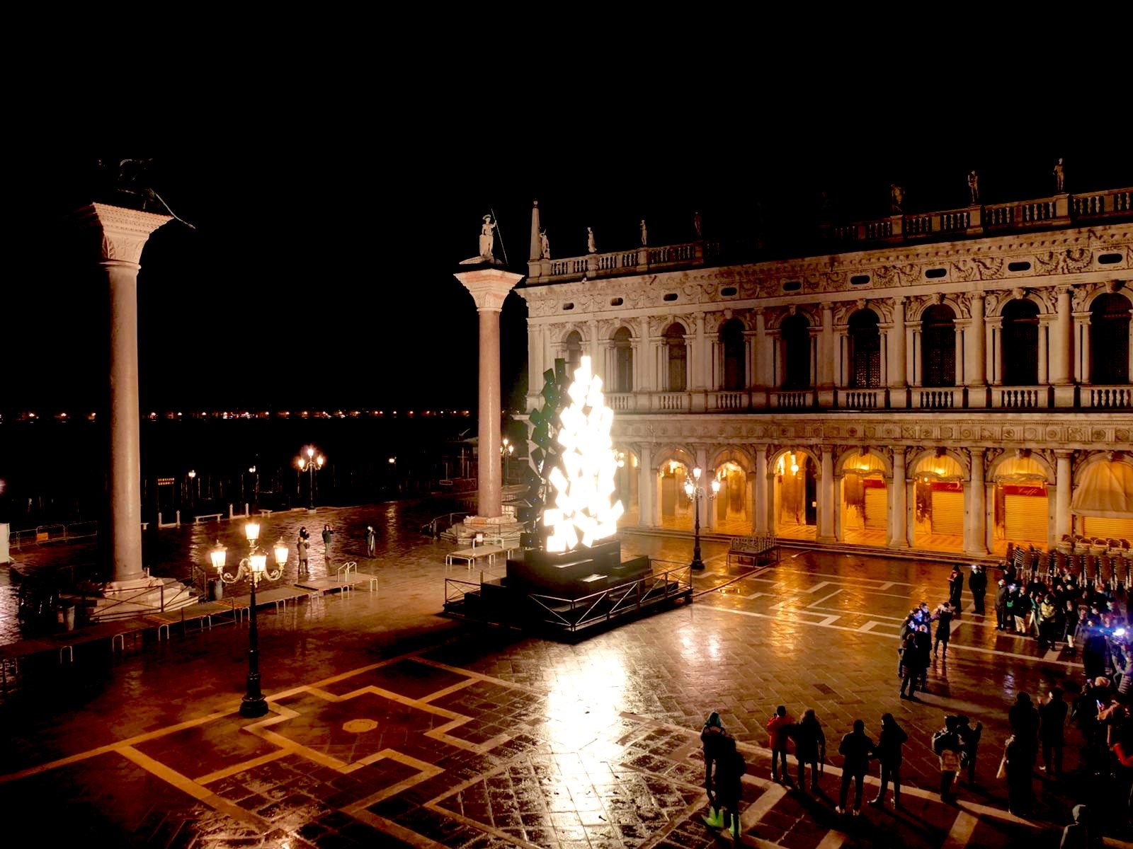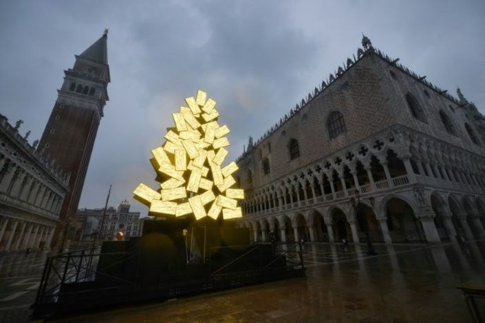 Στην πλατεία του Αγίου Μάρκου, όπου δεσπόζει η ομώνυμη Βασιλική, ο Ιταλός καλλιτέχνης Φαμπρίτσιο Πλέσι εγκατέστησε ένα μονάχα χριστουγεννιάτικο δέντρο. Πρόκειται για ένα έργο από τεράστιες ορθογώνιες οθόνες, που προβάλλουν εικόνες με χρυσό χρώμα, οι οποίες στήθηκαν η μία πάνω στην άλλη για να σχηματίσουν τη μορφή του παραδοσιακού έλατου. Τη νύχτα, αυτές οι οθόνες πλημμυρίζουν με χρώμα την πλατεία εκπέμποντας ένα ζεστό φως.