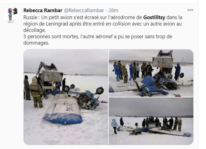 Τρεις άνθρωποι, δύο άνδρες και μια γυναίκα, που επέβαιναν σε αεροσκάφος τύπου Piper σκοτώθηκαν όταν το αεροσκάφος τους συγκρούσθηκε κατά την απογείωση με αεροσκάφος τύπου Cessna, στην περιοχή του Λένινγκραντ. Σύμφωνα με την αρμόδια εισαγγελία μεταφορών, ο πιλότος του αεροσκάφους Cessna, χωρίς επιβάτες, άρχισε την απογείωσή του από το αεροδρόμιο που βρίσκεται κοντά στο χωριό Γαστίλιτσα στις 13:38. (ώρα Μόσχας). Ένα λεπτό αργότερα, στις 13:39, απογειώθηκε το αεροσκάφος τύπου Piper στο οποίο επέβαιναν ο πιλότος και δύο επιβάτες. Τα δύο αεροσκάφη συγκρούσθηκαν στον αέρα στις 13:40, πάνω από τον διάδρομο απογείωσης.