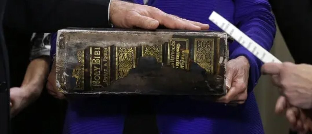 Τεράστια όμως ήταν και η Βίβλος στην οποία ορκίστηκε ο Τζο Μπάιντεν, με τις κιτρινισμένες σελίδες, αφού ανήκει στην οικογένειά του από τα τέλη του 19ου αιώνα. Υπό ορισμένες γωνίες, η Βίβλος δείχνει αφύσικα μεγάλη.