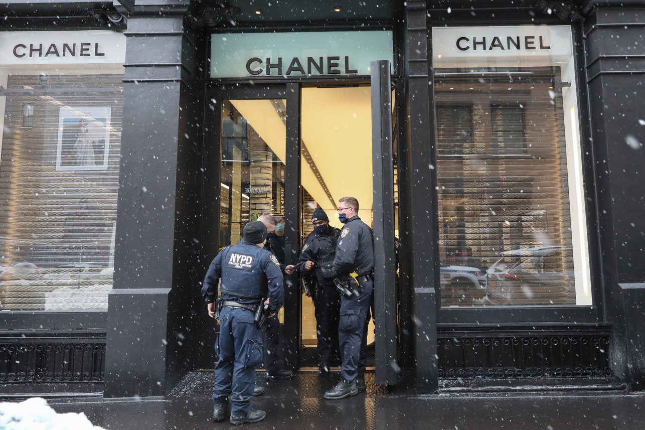 Με λεία περίπου 160.000 δολαρίων έφυγαν τέσσερις ένοπλοι που εισέβαλαν σε μπουτίκ της Chanel στην περιοχή του Σόχο στη Νέα Υόρκη, μία εμπορική περιοχή που φημίζεται για τα πολυτελή καταστήματα και εστιατόρια, τα κλαμπ, τις φανταχτερές αλυσίδες καταστημάτων και τις γκαλερί Τέχνης. Στο βίντεο από τις κάμερες ασφαλείας καταγράφονται οι κινήσεις των τεσσάρων δραστών καθώς εισέβαλαν στην μπουτίκ πολυτελών ειδών, γύρω στις 2 το μεσημέρι την Τρίτη, και άρχισαν να αρπάζουν τις τσάντες σχεδιαστών από τα ράφια. “Κουνήσου! Κουνήσου” φώναξε κάποιος.