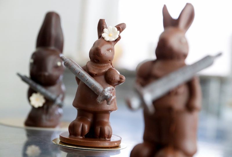 Σε αντίθεση με τους χριστουγεννιάτικους σοκολατένιους Αγιοβασίληδές του, τα λαγουδάκια του δεν φορούν πλέον προστατευτικές μάσκες.