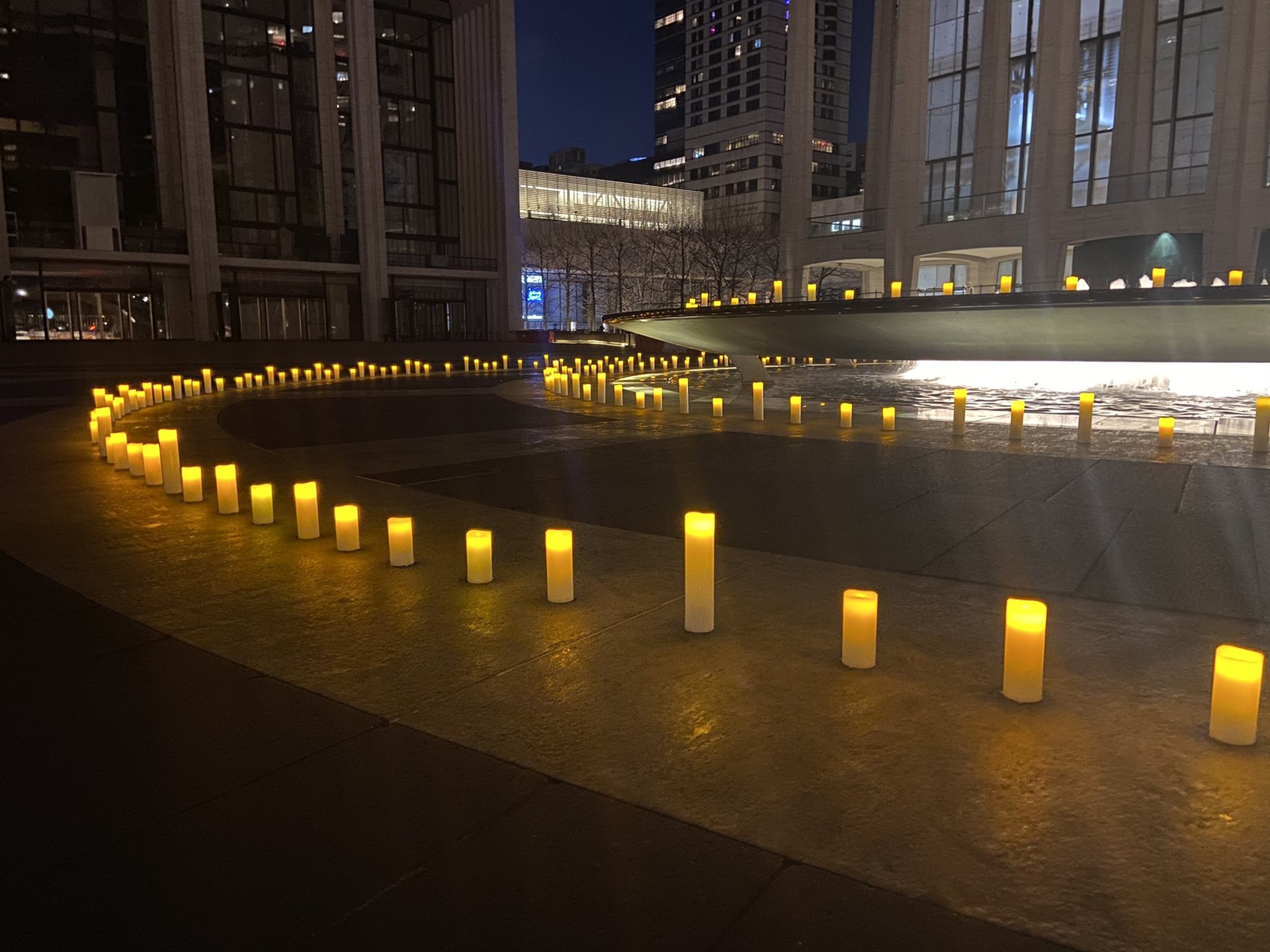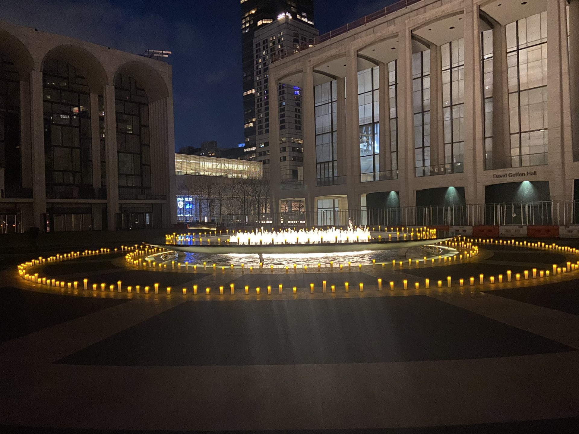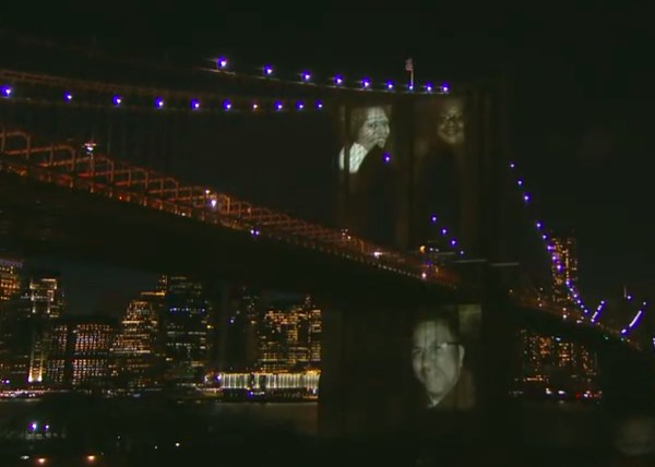 Η τελετή ξεκίνησε με ένα σύντομο ρεσιτάλ της Φιλαρμονικής της Νέας Υόρκης, μπροστά από αναμμένα κεριά στην εμβληματική γέφυρα του Μπρούκλιν, σε μια παγερή νύχτα με δυνατούς ανέμους. Μεγάλες ασπρόμαυρες φωτογραφίες των θυμάτων προβάλλονταν στη γέφυρα.