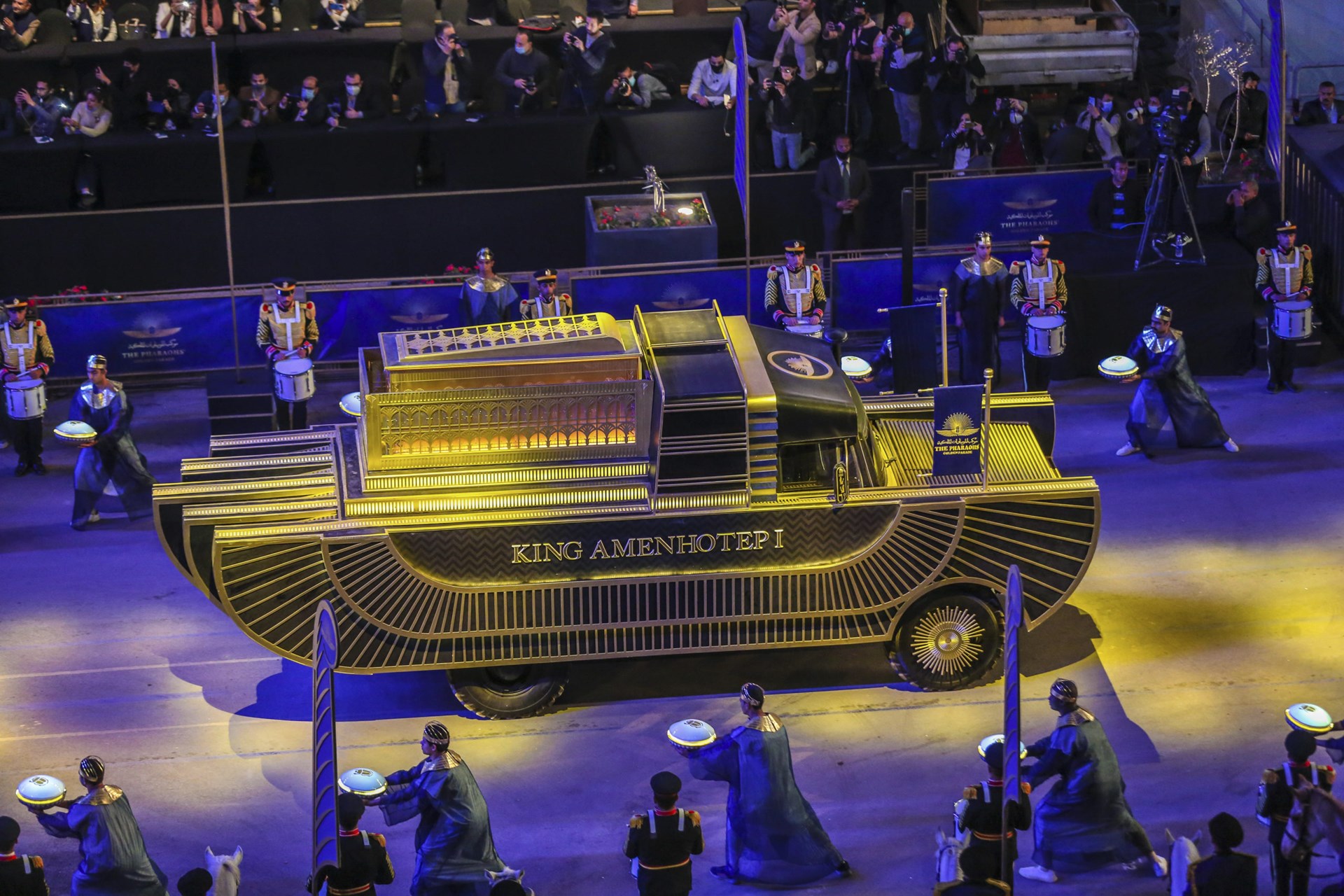 Είκοσι δύο άρματα, που μετέφεραν τις μούμιες βασιλιάδων και βασιλισσών της αρχαίας Αιγύπτου, παρέλασαν απόψε το βράδυ στους δρόμους του Καΐρου, σε ένα φαραωνικό θέαμα, για να πάνε στο καινούριο «σπίτι» τους, το Εθνικό Μουσείο Αιγυπτιακού Πολιτισμού (NMEC).