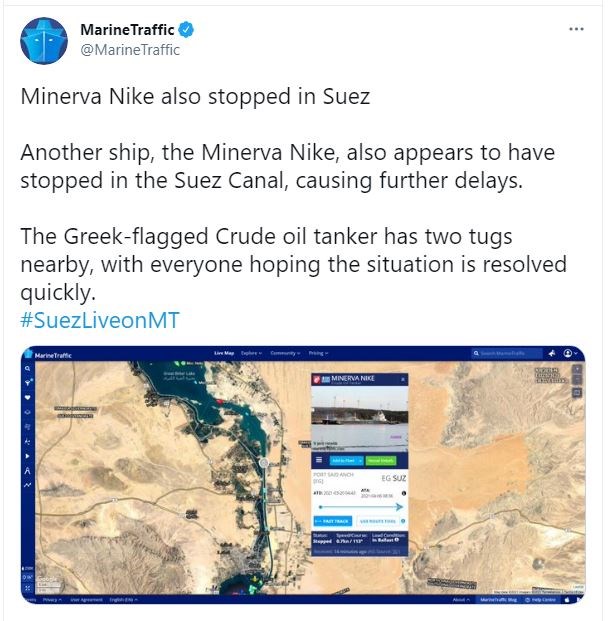 Μετά την προσκόλληση του πλοίου Ever Given στη Διώρυγα του Σουέζ που μπλόκαρε τη διέλευση για εκατοντάδες πλοία προκαλώντας τεράστια αναταραχή στις διεθνείς αλυσίδες εφοδιασμού, οι αναφορές για καθυστερήσεις στην παγκόσμια πλωτή οδό είναι ιδιαίτερα ευαίσθητες. Έτσι, όπως έγινε γνωστό, το πλοίο Minerva Nike υπό ελληνική σημαία, φέρεται να προσκόλλησε και αυτό νωρίτερα στη Διώρυγα μπλοκάροντας τη διέλευση και προκαλώντας νέες καθυστερήσεις.