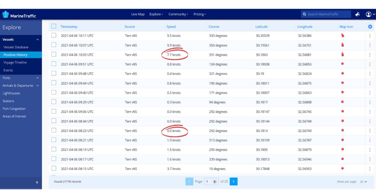 Σύμφωνα με το Marine Traffic, οι μηχανές επαναλειτούργησαν μία ώρα και έξι λεπτά μετά.