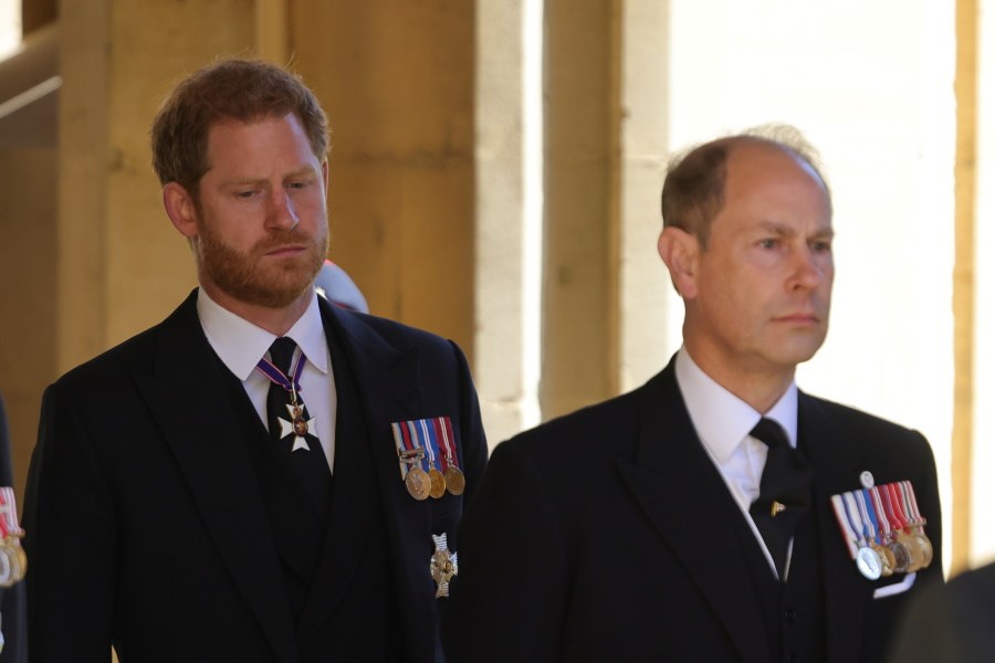 Η Μέγκαν παρακολούθησε τον σύζυγό της να ακολουθεί το φέρετρο του 99χρονου παππού του και συζύγου της βασίλισσας Ελισάβετ μαζί με άλλα μέλη της βασιλικής οικογένειας, ανάμεσά τους ο πατέρας του Χάρι, πρίγκιπας Κάρολος και ο αδελφός του, πρίγκιπας Γουίλιαμ.