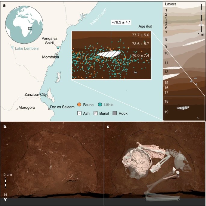 Μία πολύ σπουδαία ανακάλυψη πραγματοποίησαν αρχαιολόγοι στην Κένυα. Ένα παιδί, το οποίο δεν ήταν πάνω από 2,5-3 ετών, αναπαυόταν επί 78.000 χρόνια σε έναν ρηχό τάφο, όπου το τοποθέτησε με φροντίδα η οικογένειά του, μέσα σε ένα σπήλαιο της Κένυας. Οι αρχαιολόγοι, μετά από οκτώ χρόνια ανασκαφών, έφεραν στο φως τον αρχαιότερο τάφο σύγχρονου ανθρώπου στην Αφρική, στην καρδιά ενός τροπικού δάσους.