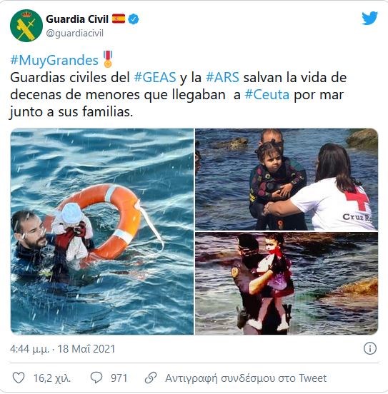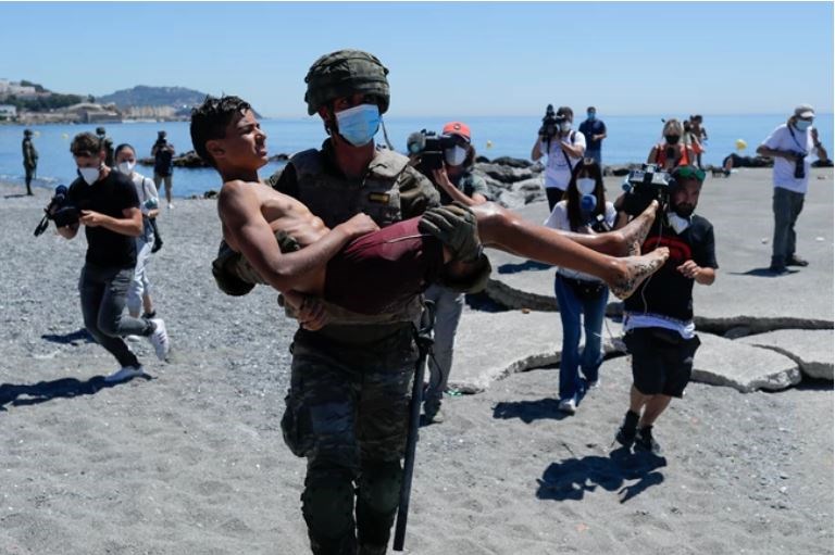 Η φωτογραφία, που ανήρτησε στο Twitter η ισπανική αστυνομία και κάνει τον γύρο του κόσμου, προσωποποιεί όλο το δράμα που λαμβάνει χώρα μπροστά από τον ισπανικό θύλακα Θέουτα. Δείχνει ότι πίσω από τους ψυχρούς αριθμούς υπάρχουν ανθρώπινα δράματα.