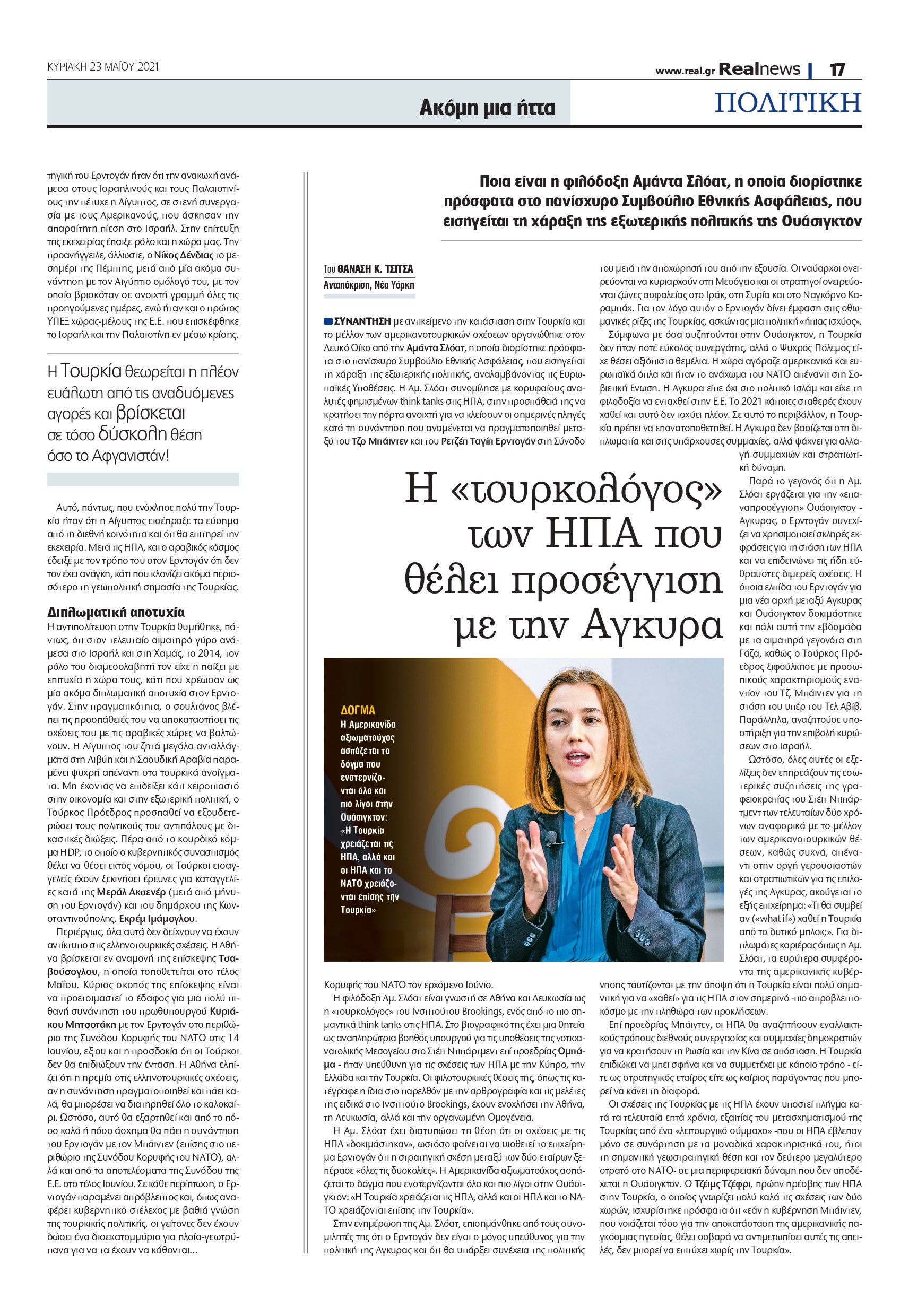 Παίζει με τη φωτιά ο σουλτάνος, που θεώρησε τη σύγκρουση των Ισραηλινών και των Παλαιστινίων ευκαιρία να σπάσει τη διπλωματική του απομόνωση και να εμφανιστεί ως ηγέτης του μουσουλμανικού κόσμου. Το μέτωπο, όμως, που άνοιξε ο Ρετζέπ Ταγίπ Ερντογάν με τις ΗΠΑ, επειδή στηρίζουν το Ισραήλ, οδήγησε τη λίρα σε κατάρρευση, ενώ έδειξε και τα όρια του γεωπολιτικού ρόλου που μπορεί να παίξει η Τουρκία. Πιεσμένος από όλα αυτά και στο εσωτερικό της χώρας του, ο Ερντογάν δρομολογεί μπαράζ διώξεων κατά της αντιπολίτευσης.