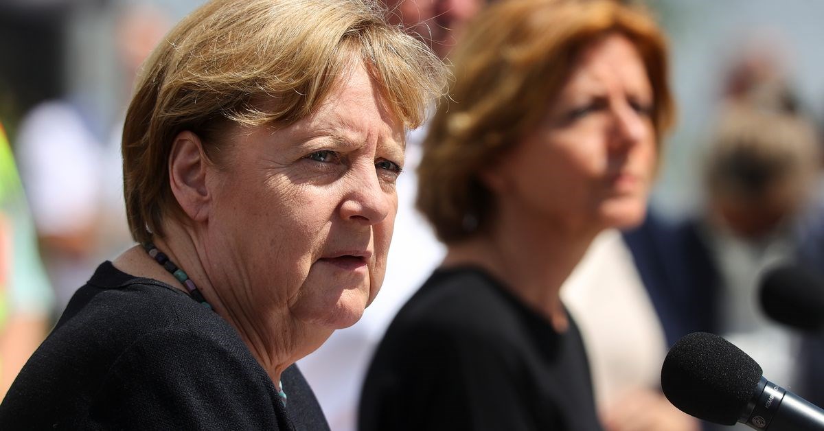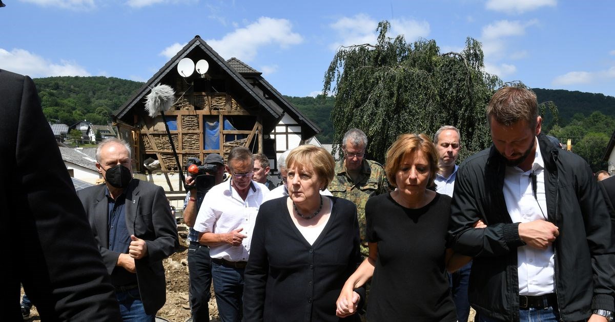 Ερωτώμενη σχετικά με τον πρωθυπουργό της Βόρειας Ρηνανίας – Βεστφαλίας και υποψήφιο καγκελάριο Άρμιν Λάσετ (CDU), ο οποίος γελούσε, ενώ ο Ομοσπονδιακός Πρόεδρος Φρανκ-Βάλτερ Σταϊνμάιερ εξέφραζε τη θλίψη του για την καταστροφή, η καγκελάριος περιορίστηκε να δηλώσει ότι «και η Βόρεια Ρηνανία – Βεστφαλία έχει πληγεί ιδιαίτερα».