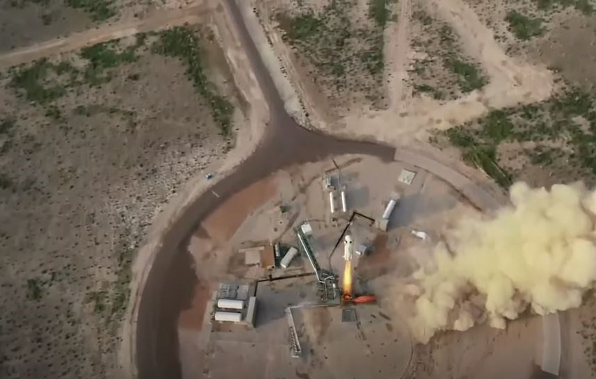 Το διαστημόπλοιο New Shepard απογειώθηκε από τη διαστημική βάση της εταιρείας στην έρημο του Τέξας στις 08.11 τοπική ώρα (16.11 ώρα Ελλάδας) με καθυστέρηση λίγων λεπτών από το προκαθορισμένο χρονοδιάγραμμα.