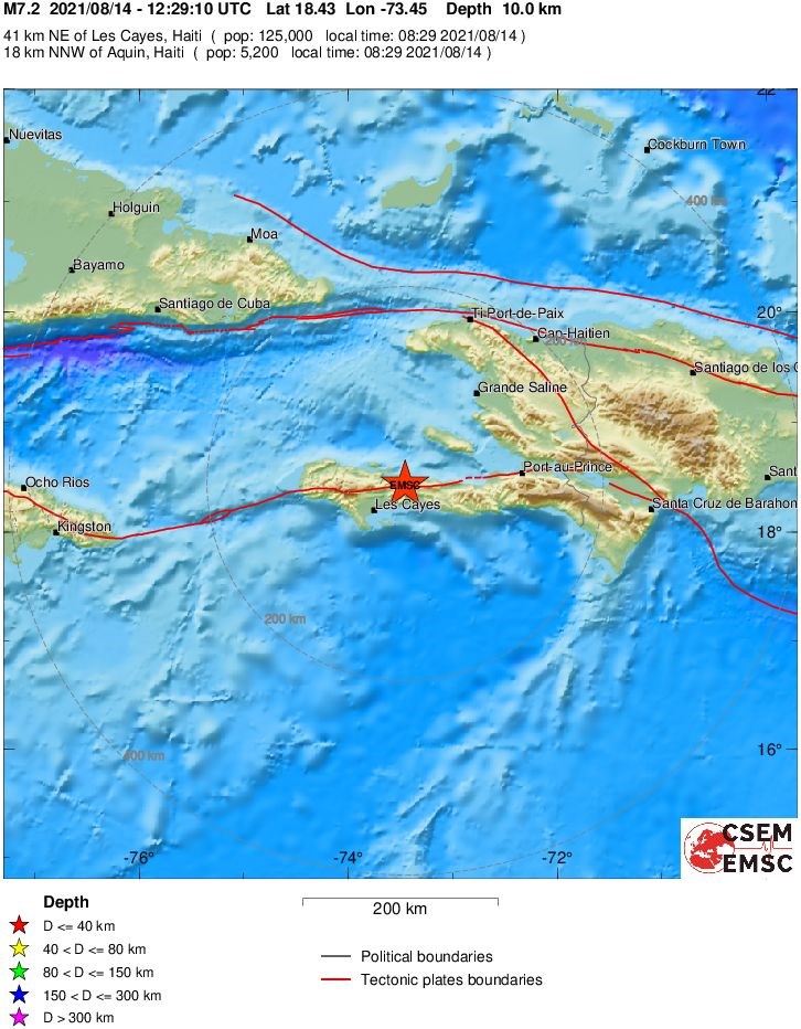 Ισχυρός σεισμός σημειώθηκε πριν από λίγο στην Αϊτή. Σύμφωνα με το Ευρωμεσογειακό, ο σεισμός ήταν μεγέθους 7,2 βαθμών της κλίμακας Ρίχτερ σε εστιακό βάθος 10 χιλιομέτρων.