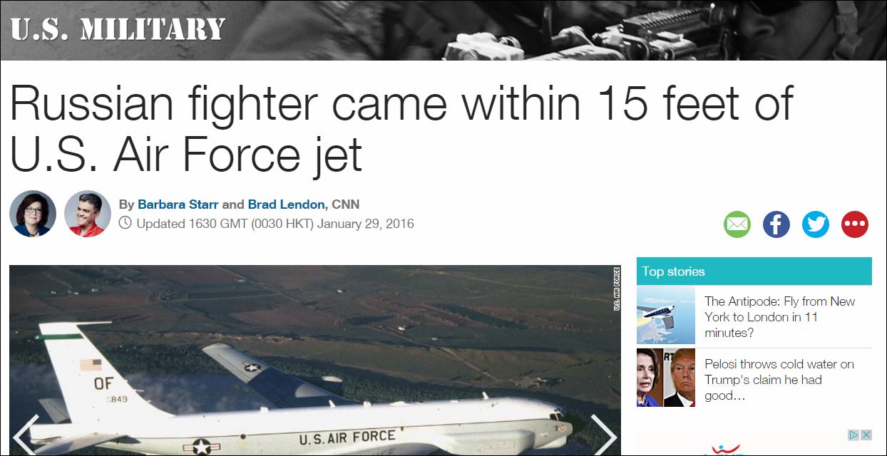 Συγκεκριμένα, το ρεπορτάζ αναφέρει πως «το ρωσικό μαχητικό Su-27 πλησίασε το αμερικανικό αεροσκάφος RC-135U και πραγματοποίησε ελιγμό που έθεσε σε κίνδυνο το πλήρωμα του αεροσκάφους».