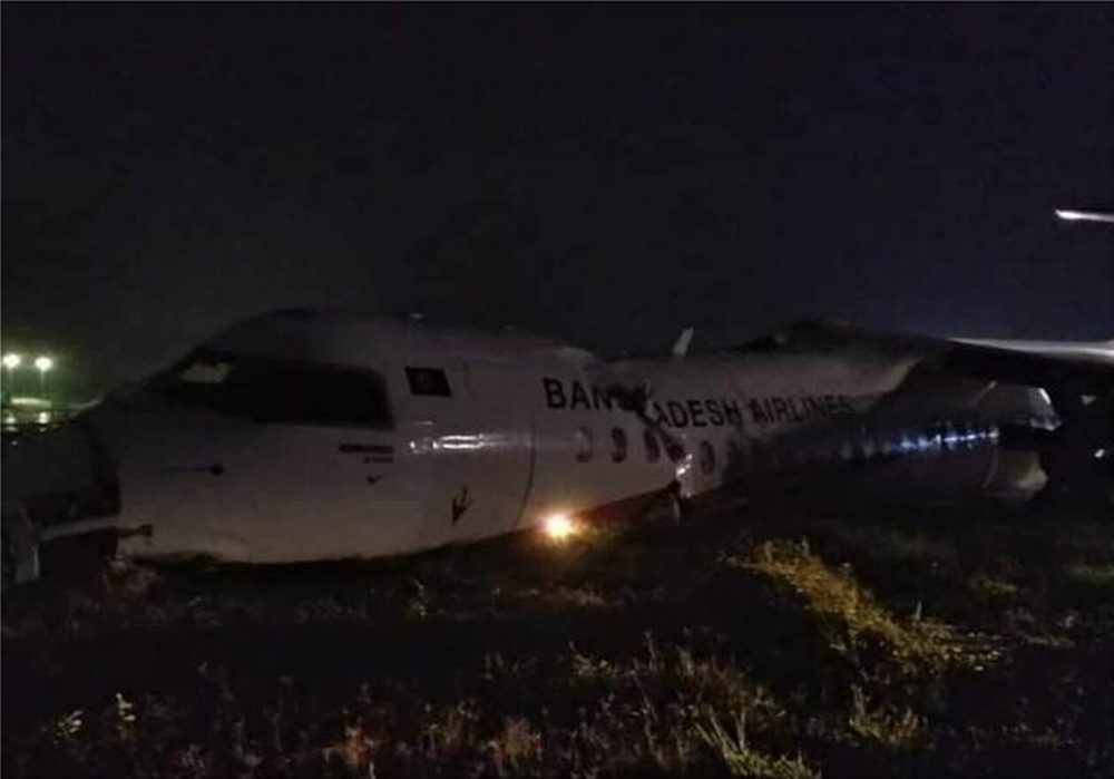 “Φτερό στον άνεμο” αεροσκάφος της εταιρείας Biman Bangladesh Airlines. Ξέφυγε από τον διάδρομο κατά τη διαδικασία προσγείωσης στο διεθνές αεροδρόμο της Γιανγκόν, με αποτέλεσμα να τραυματιστούν τουλάχιστον 17 άνθρωποι.