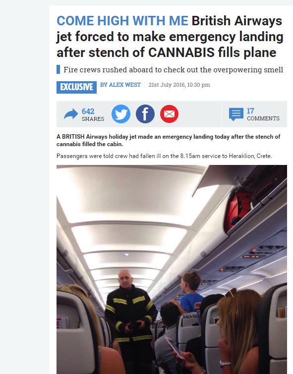 Αεροπλάνο των βρετανικών αερογραμμών με προορισμό το Ηράκλειο Κρήτης, αναγκάστηκε να προσγειωθεί επειδή οι επιβάτες διαμαρτύρονταν για μια «έντονη μυρωδιά κάνναβης».