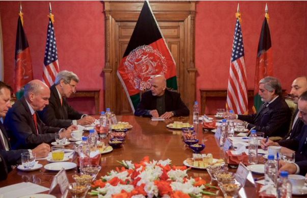 «Έχουμε μιλήσει για τον κοινό μας στόχο που είναι η έναρξη των ειρηνευτικών διαπραγματεύσεων με τους Ταλιμπάν» δήλωσε ο Κέρι μετά τις συνομιλίες με τον πρόεδρο της χώρας Άσραφ Γάνι.