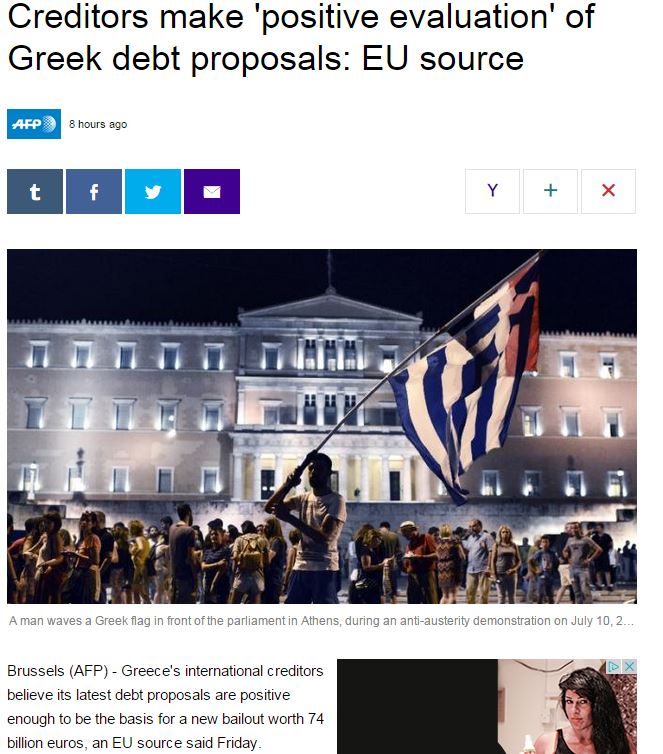Οι διεθνείς πιστωτές της Ελλάδας θεωρούν ότι οι τελευταίες προτάσεις της Αθήνας είναι αρκετά θετικές για να αποτελέσουν τη βάση για ένα νέο πακέτο διάσωσης ύψους 74 δισ. ευρώ, αναφέρει πηγή της ΕΕ στο Γαλλικό Πρακτορείο.