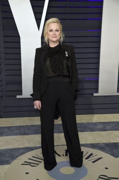 Μαύρο φράκο φόρεσε η Έιμι Πόελερ, Αμερικανίδα ηθοποιός και σκηνοθέτης με καρφίτσα από πέρλες στο πέτο.